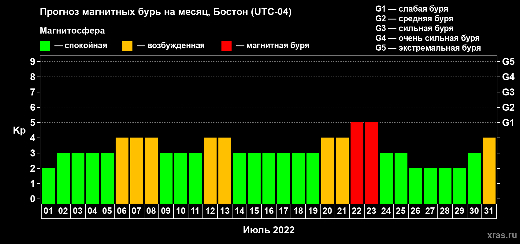 Прогноз магнитных бурь в Бостоне на 1 июля 2022 года