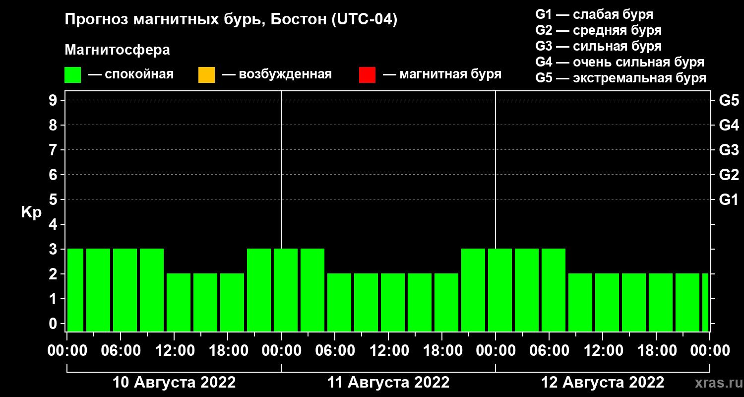 Прогноз магнитных бурь в Бостоне — 10 августа 2022 года