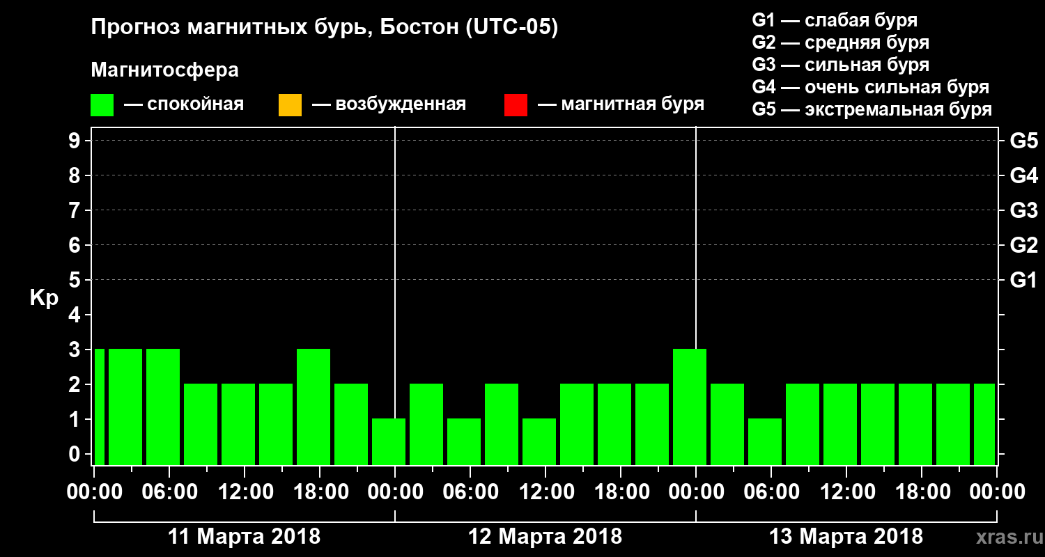 Прогноз магнитных бурь в Бостоне — 11 марта 2018 года