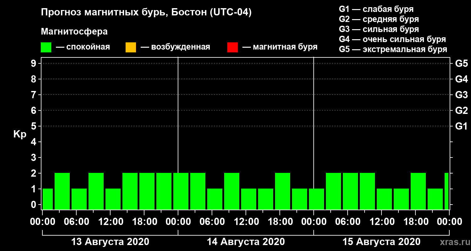 Прогноз магнитных бурь в Бостоне — 13 августа 2020 года