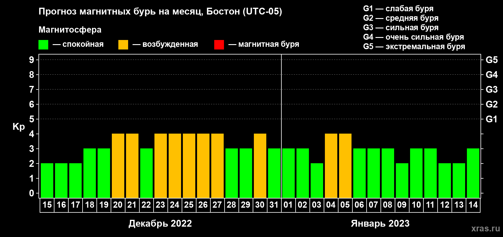 Прогноз магнитных бурь в Бостоне — 15 декабря 2022 года
