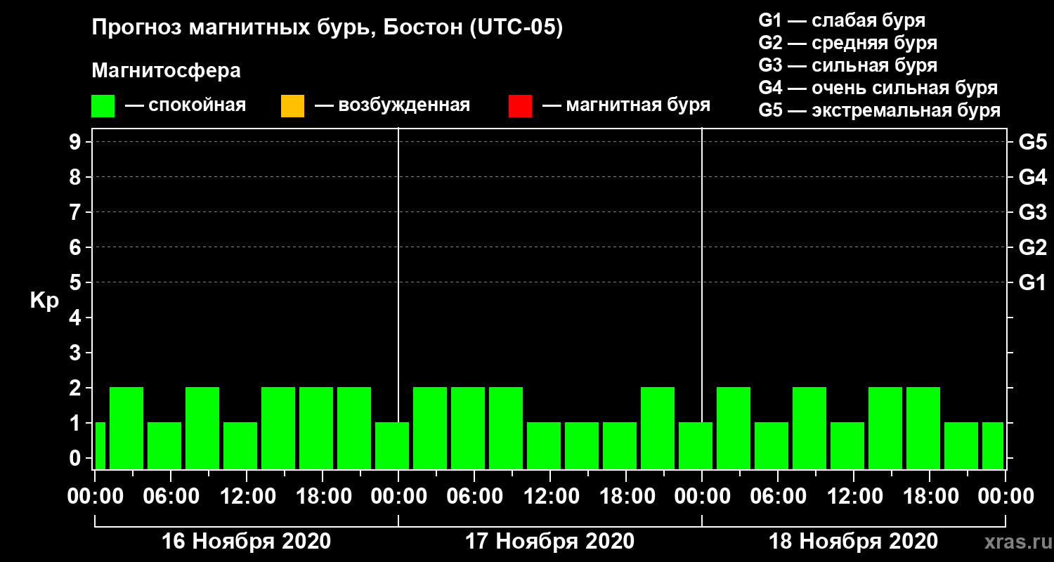 Прогноз магнитных бурь в Бостоне — 16 ноября 2020 года