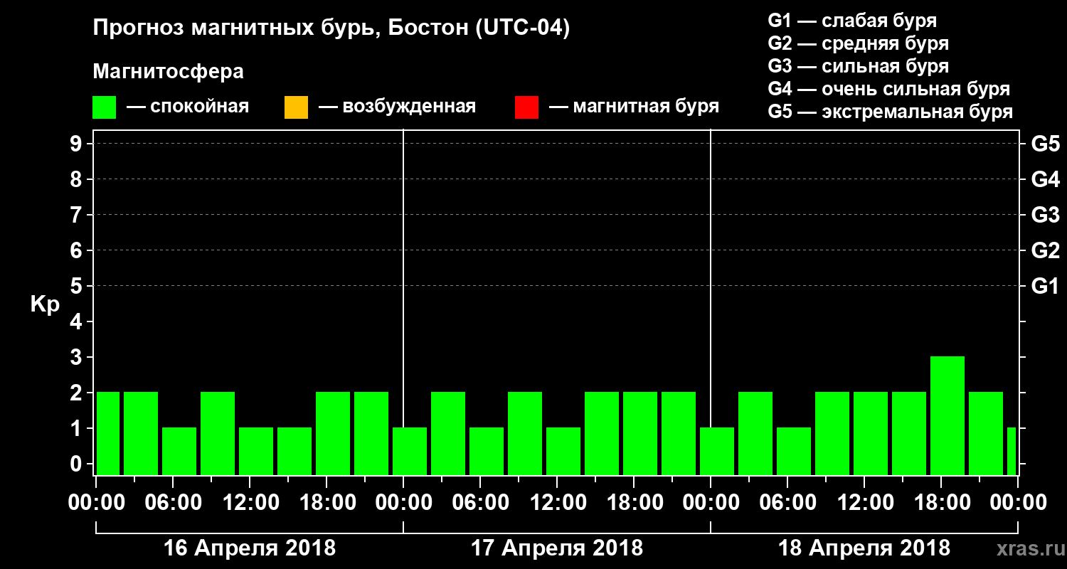 Прогноз магнитных бурь в Бостоне на 16 апреля 2018 года