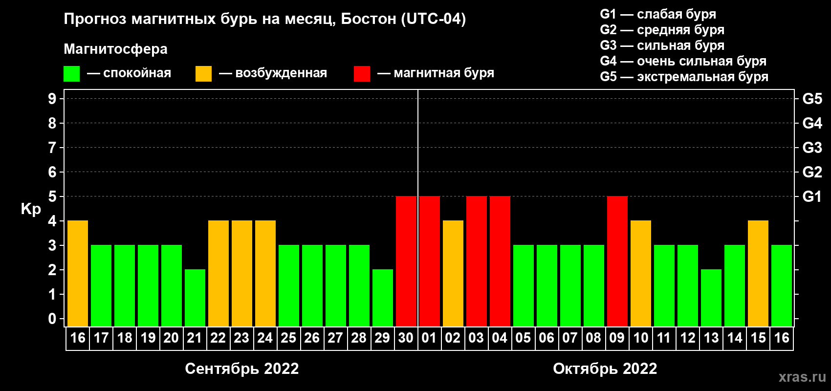 Прогноз магнитных бурь в Бостоне — 16 сентября 2022 года