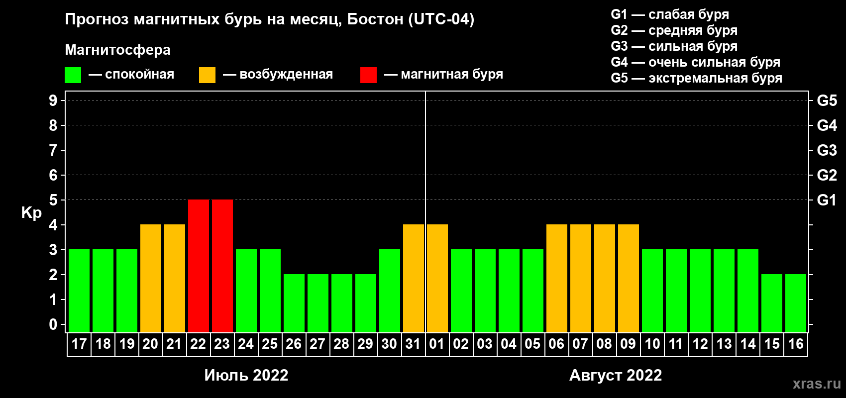 Прогноз магнитных бурь в Бостоне — 17 июля 2022 года