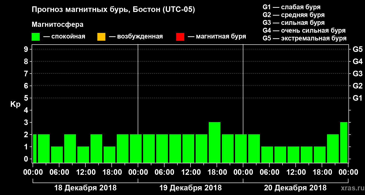 Прогноз магнитных бурь в Бостоне — 18 декабря 2018 года