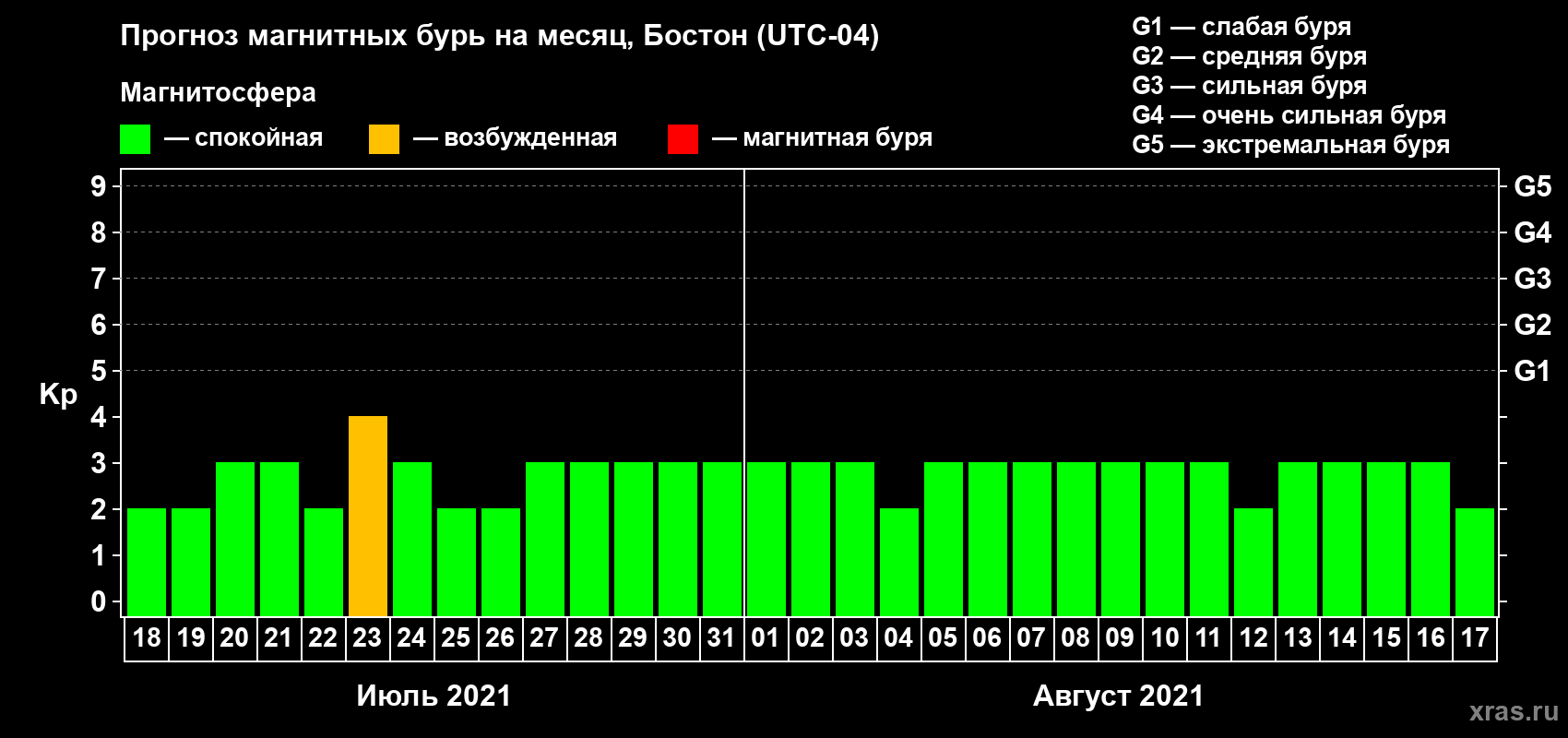 Прогноз магнитных бурь в Бостоне — 18 июля 2021 года