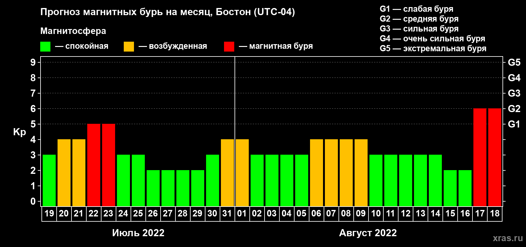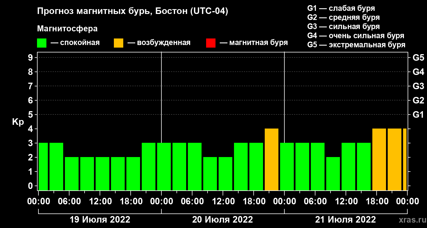 Прогноз магнитных бурь в Бостоне — 19 июля 2022 года