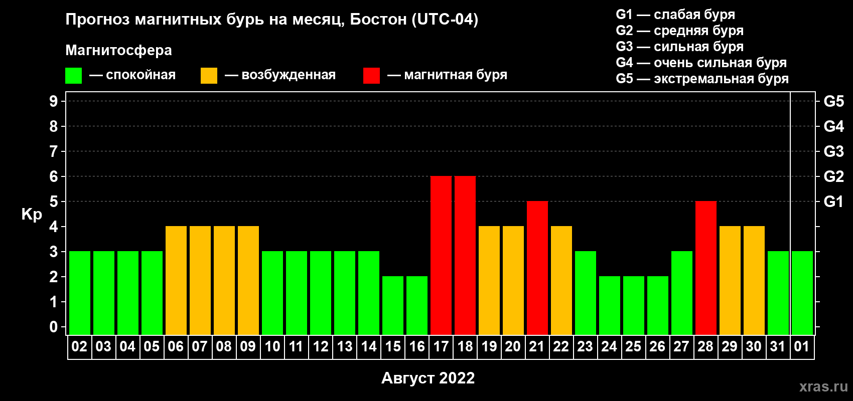 Прогноз магнитных бурь в Бостоне — 2 августа 2022 года