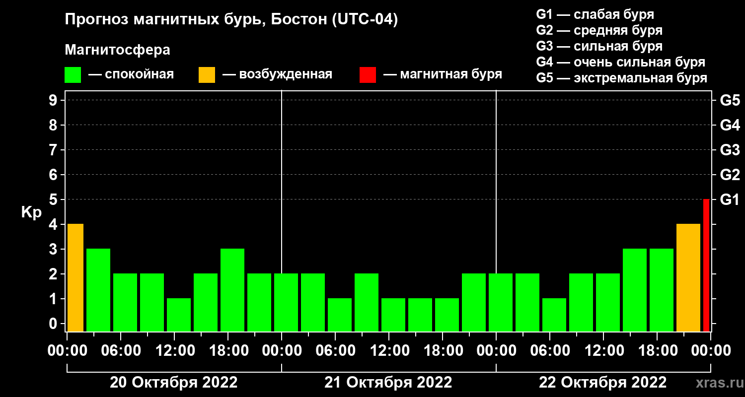 Прогноз магнитных бурь в Бостоне — 20 октября 2022 года