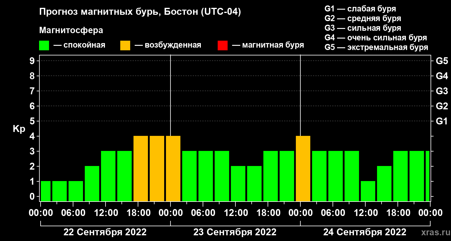 Прогноз магнитных бурь в Бостоне — 22 сентября 2022 года