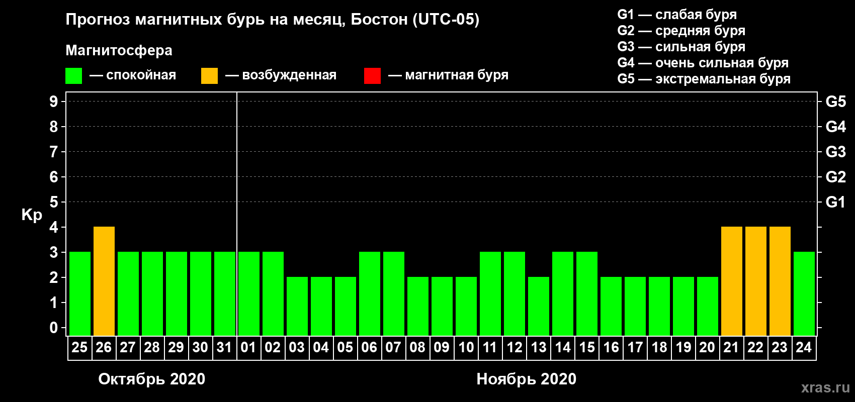 Прогноз магнитных бурь в Бостоне — 25 октября 2020 года
