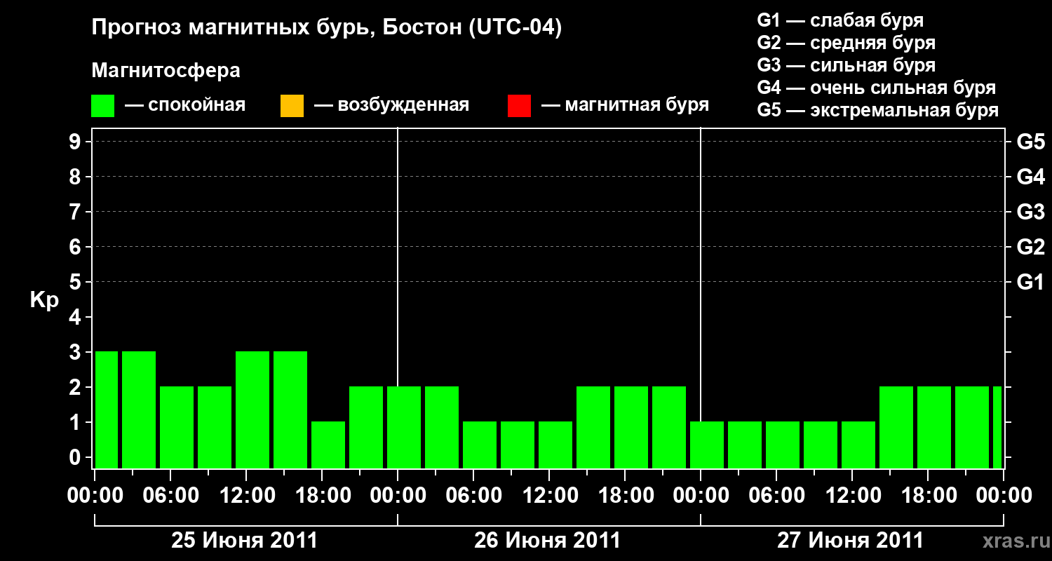 Прогноз магнитных бурь в Бостоне — 25 июня 2011 года