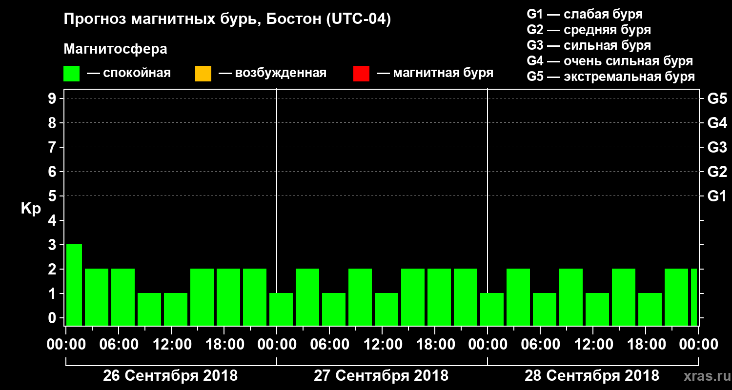 Прогноз магнитных бурь в Бостоне на 26 сентября 2018 года