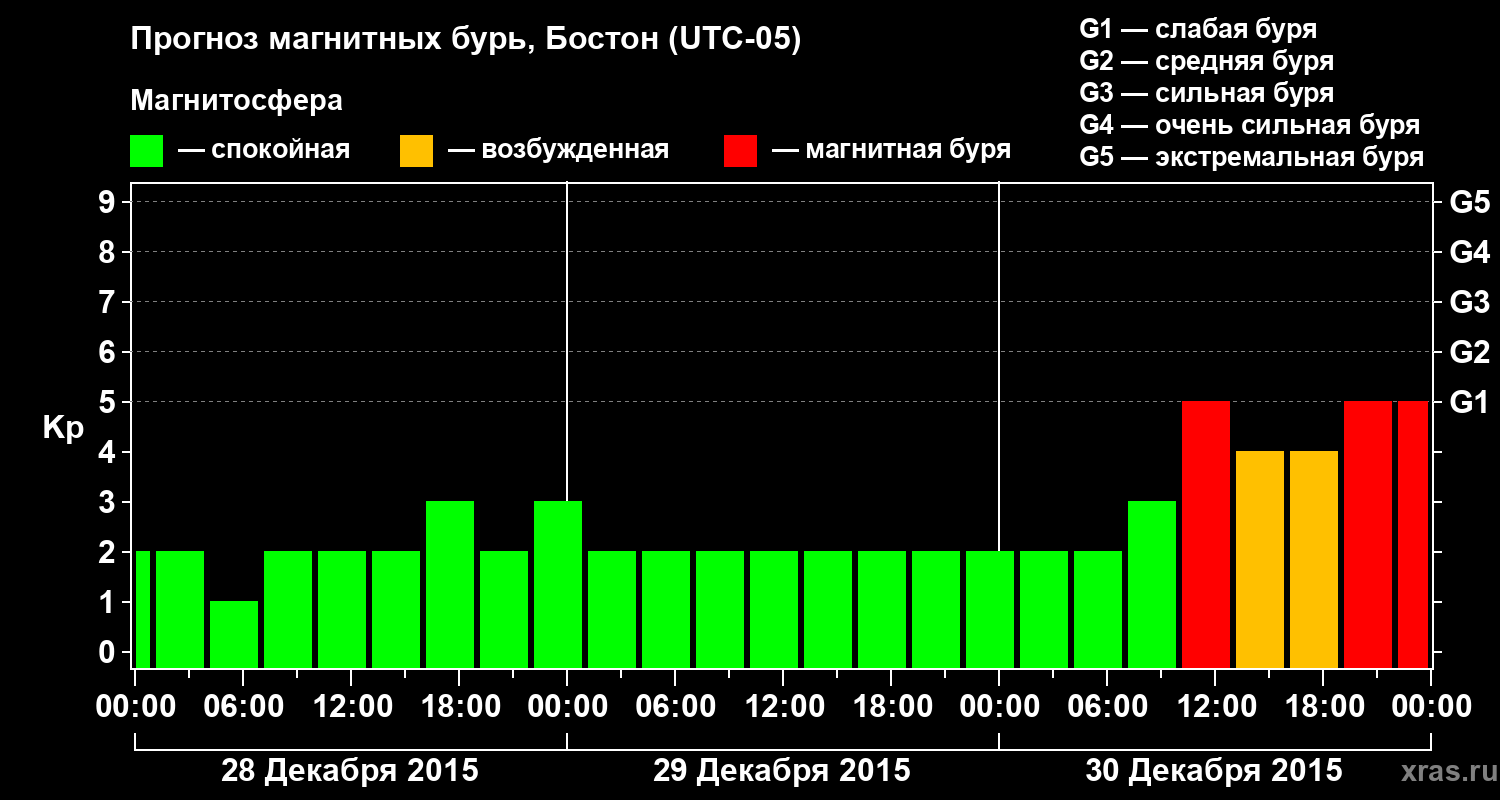 Прогноз магнитных бурь в Бостоне — 28 декабря 2015 года