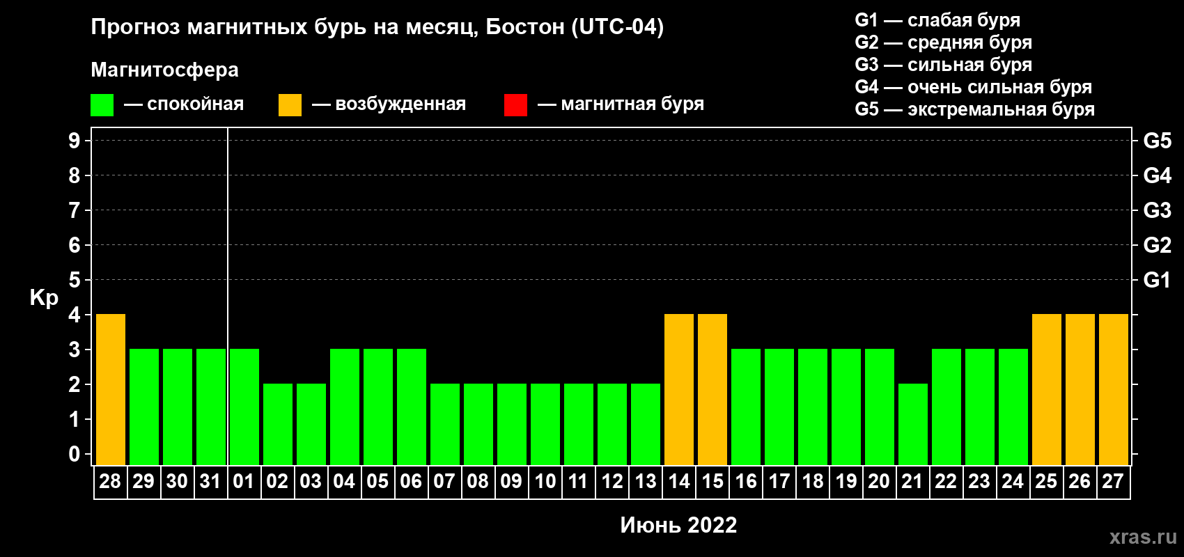 Прогноз магнитных бурь в Бостоне — 28 мая 2022 года