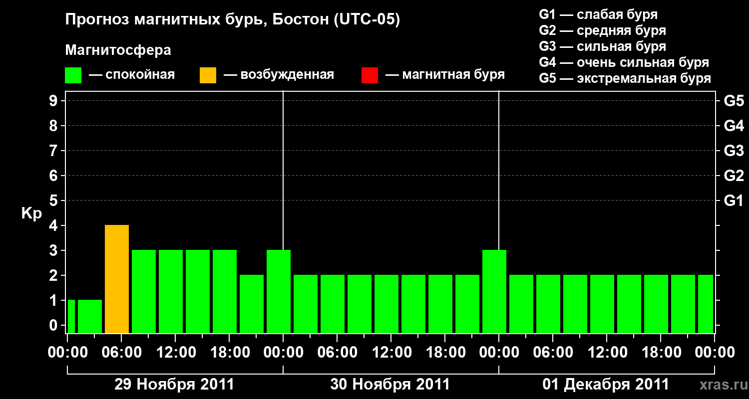 Прогноз магнитных бурь в Бостоне — 29 ноября 2011 года