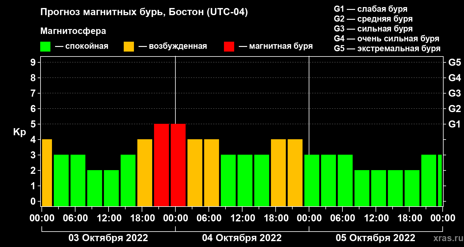 Прогноз магнитных бурь в Бостоне — 3 октября 2022 года