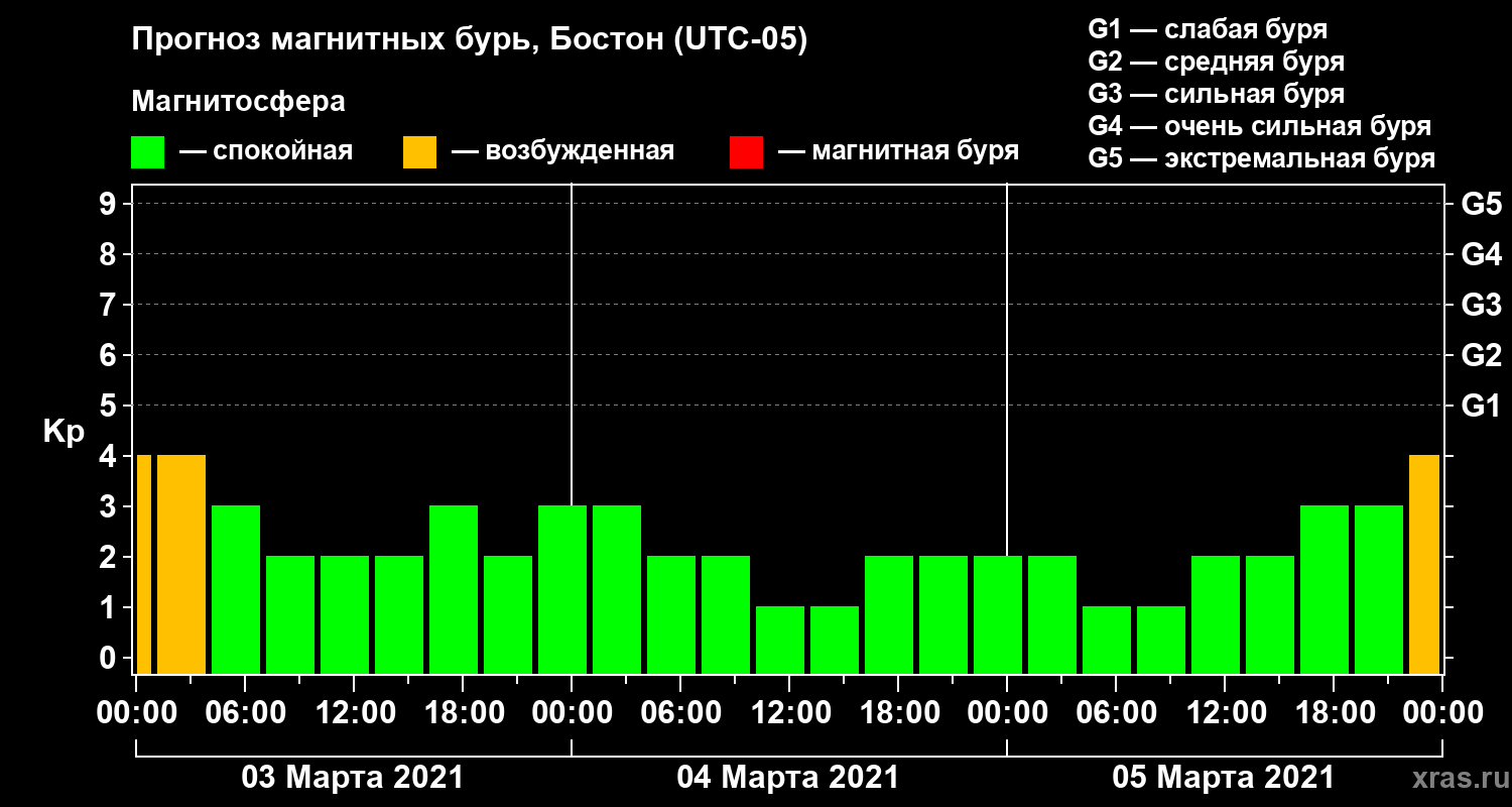 Прогноз магнитных бурь в Бостоне — 3 марта 2021 года