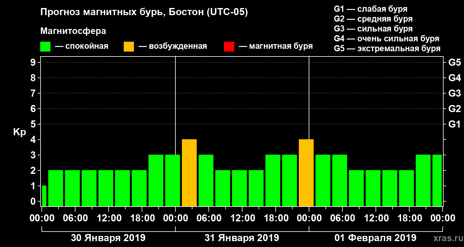 Прогноз магнитных бурь в Бостоне — 30 января 2019 года
