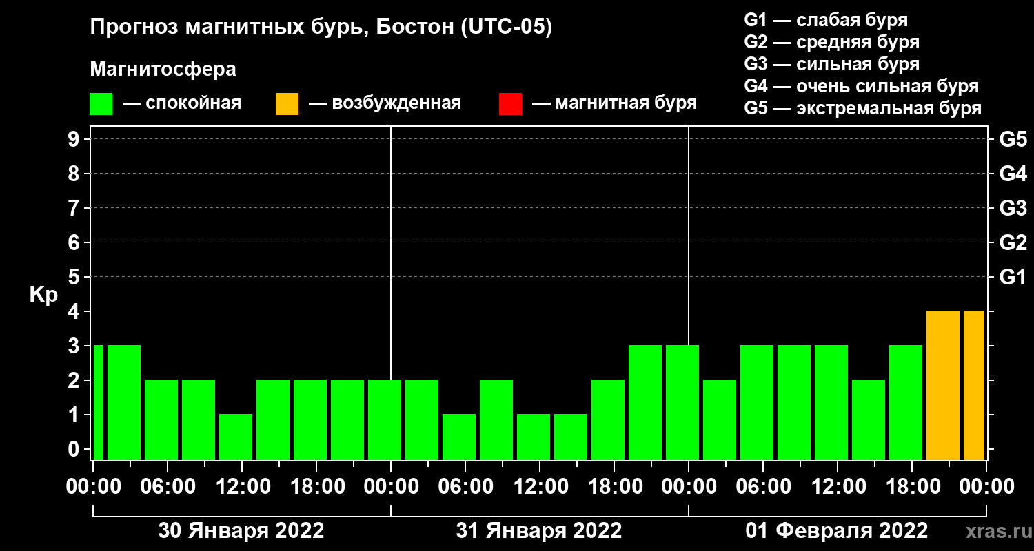 Прогноз магнитных бурь в Бостоне на 30 января 2022 года
