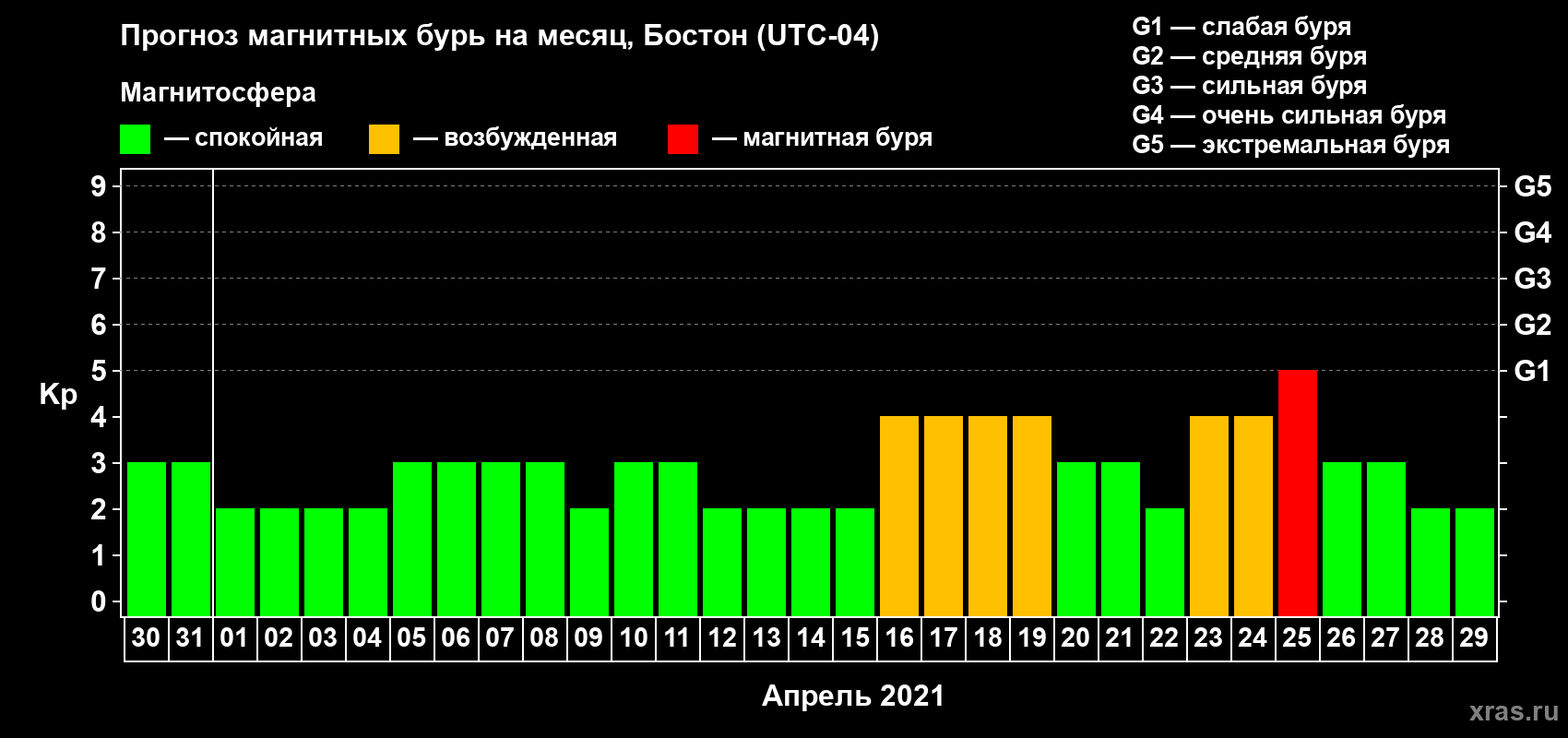 Прогноз магнитных бурь в Бостоне — 30 марта 2021 года