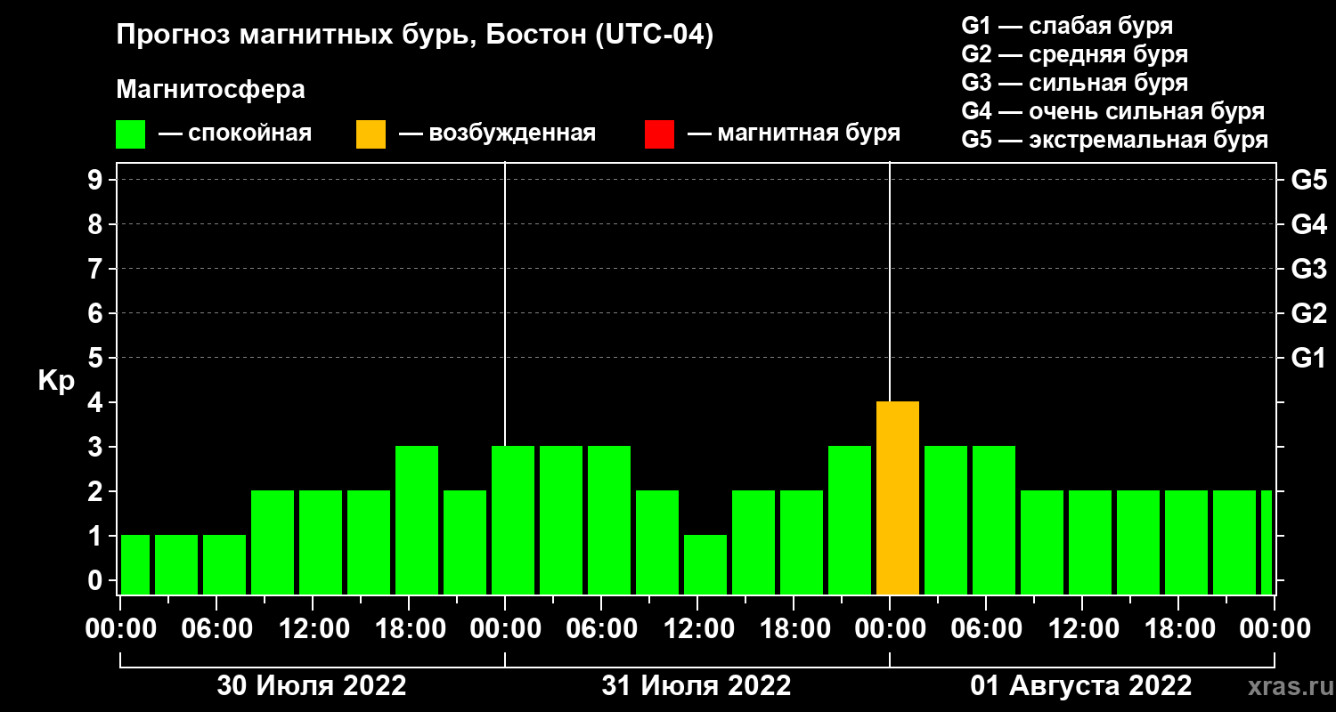 Прогноз магнитных бурь в Бостоне — 30 июля 2022 года