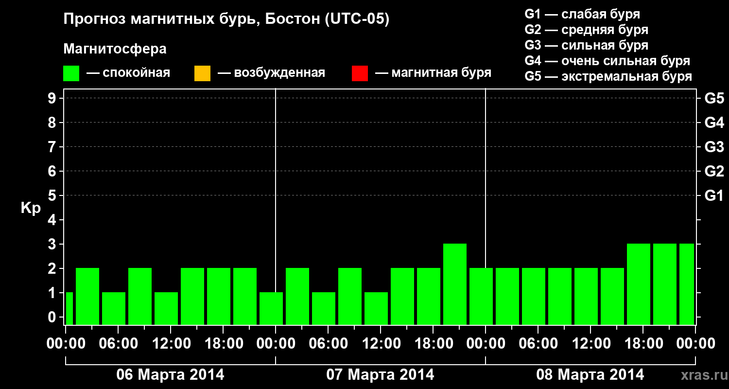 Прогноз магнитных бурь в Бостоне — 6 марта 2014 года