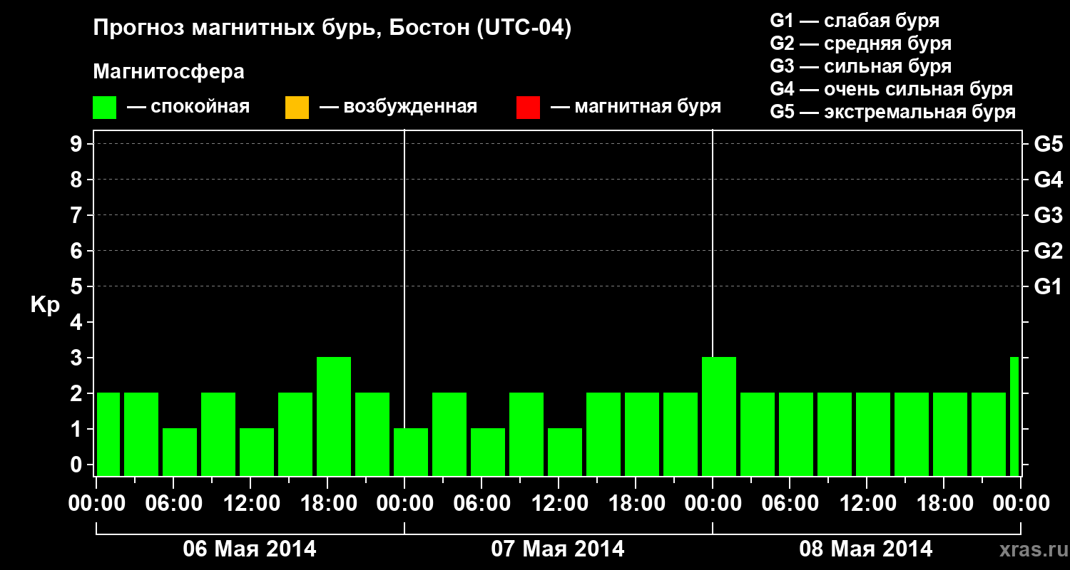 Прогноз магнитных бурь в Бостоне — 6 мая 2014 года