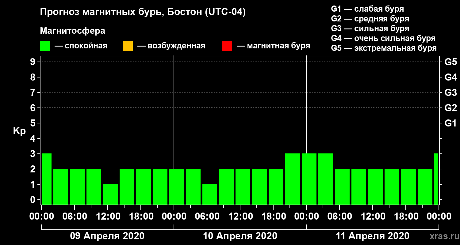 Прогноз магнитных бурь в Бостоне — 9 апреля 2020 года
