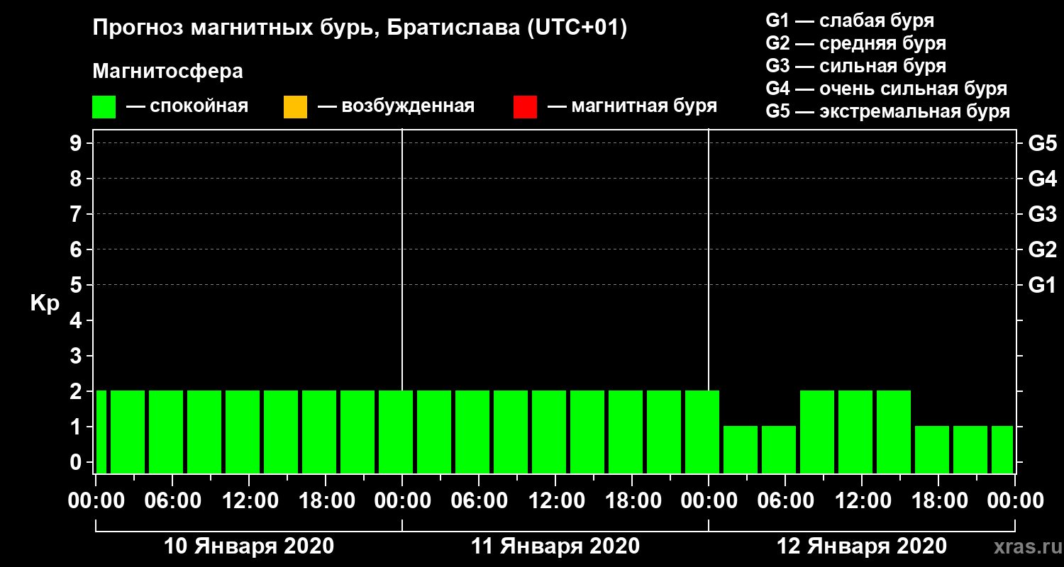Прогноз магнитных бурь в Братиславе — 10 января 2020 года