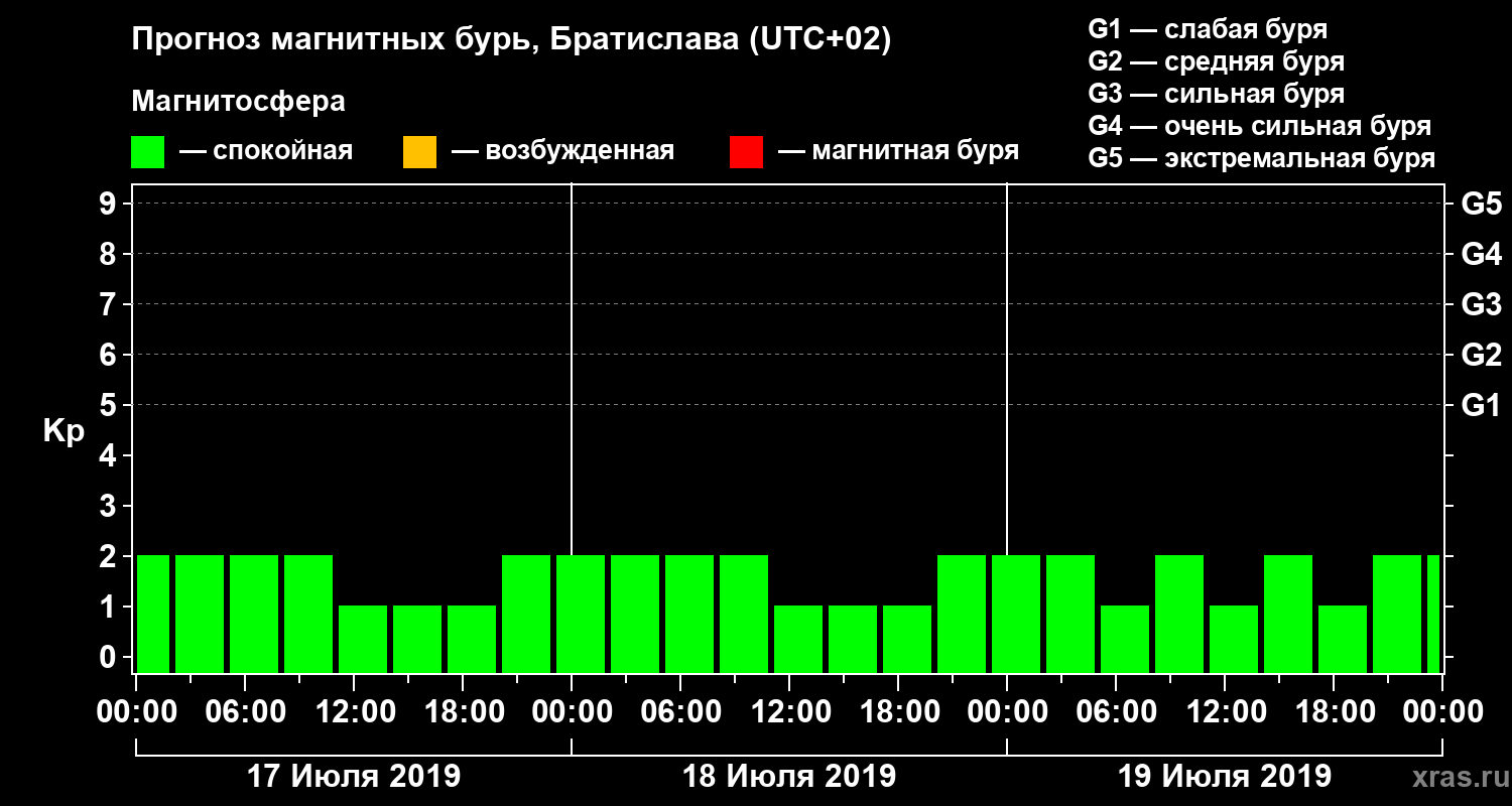 Прогноз магнитных бурь в Братиславе — 17 июля 2019 года