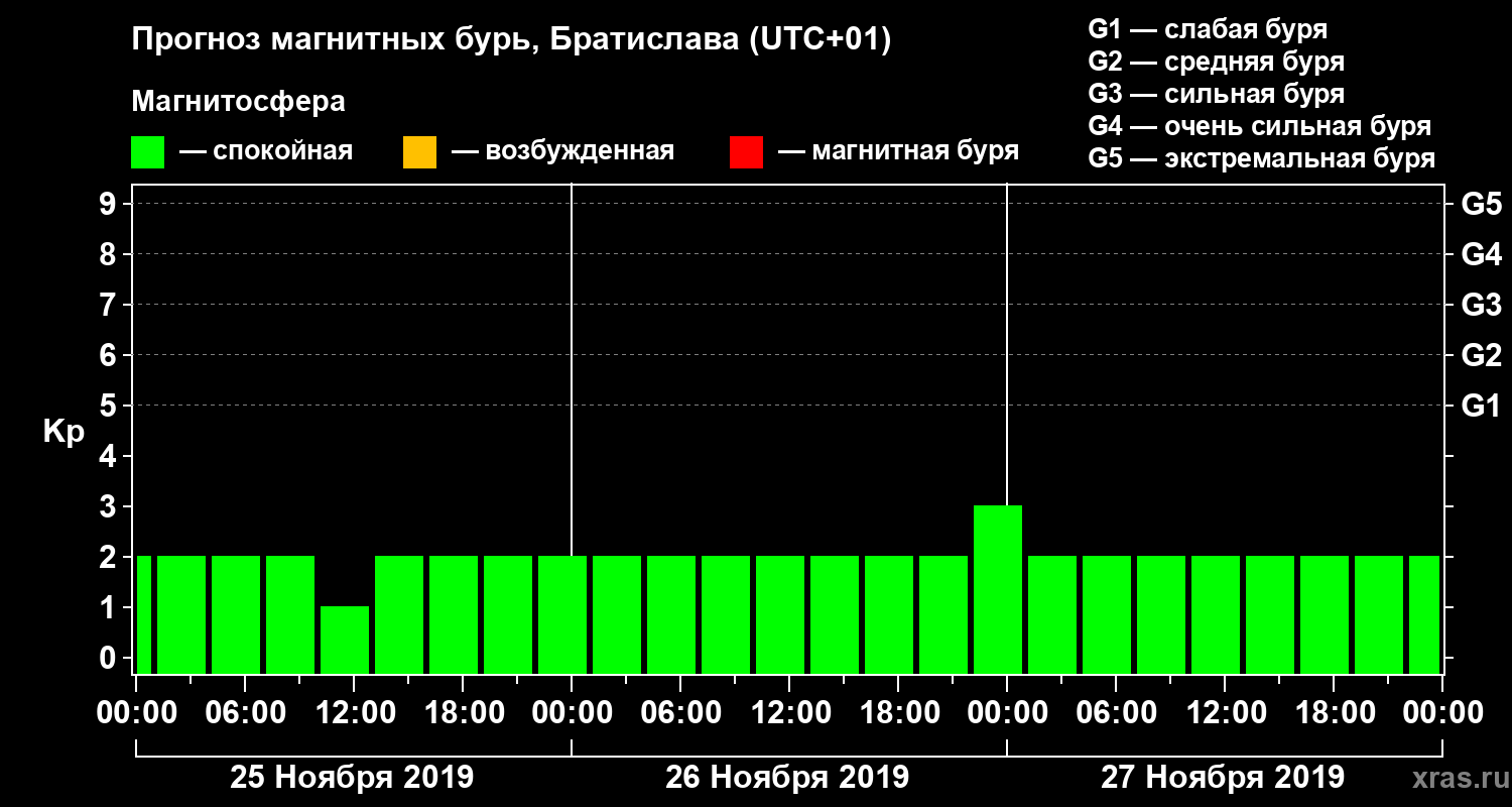 Прогноз магнитных бурь в Братиславе — 25 ноября 2019 года