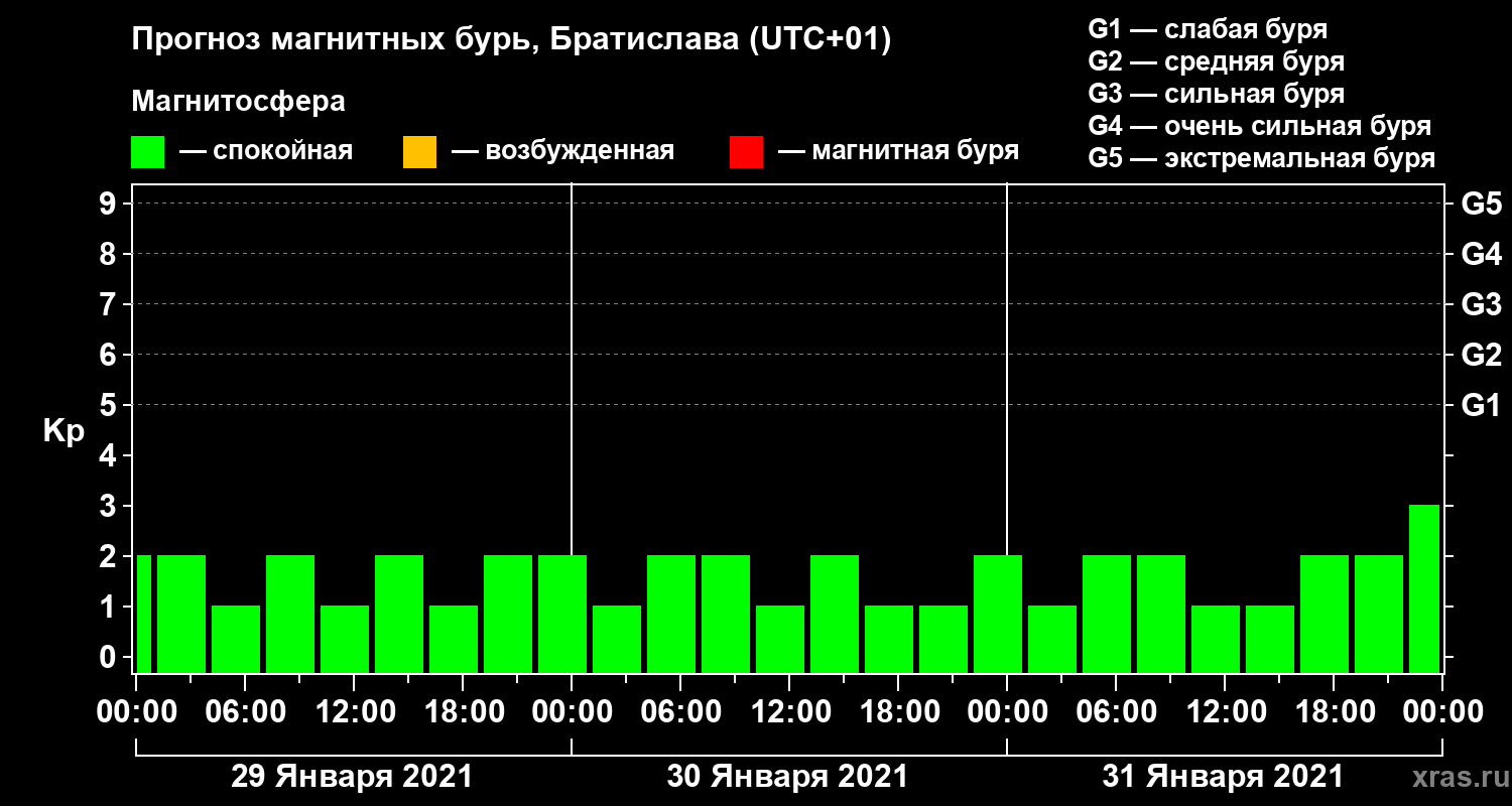Прогноз магнитных бурь в Братиславе — 29 января 2021 года