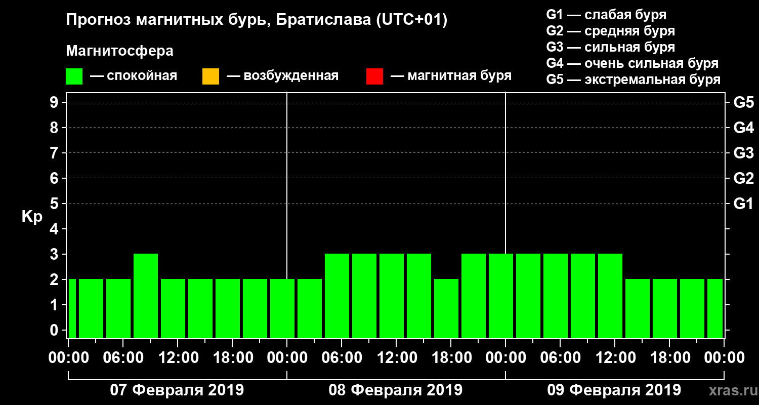 Прогноз магнитных бурь в Братиславе — 7 февраля 2019 года