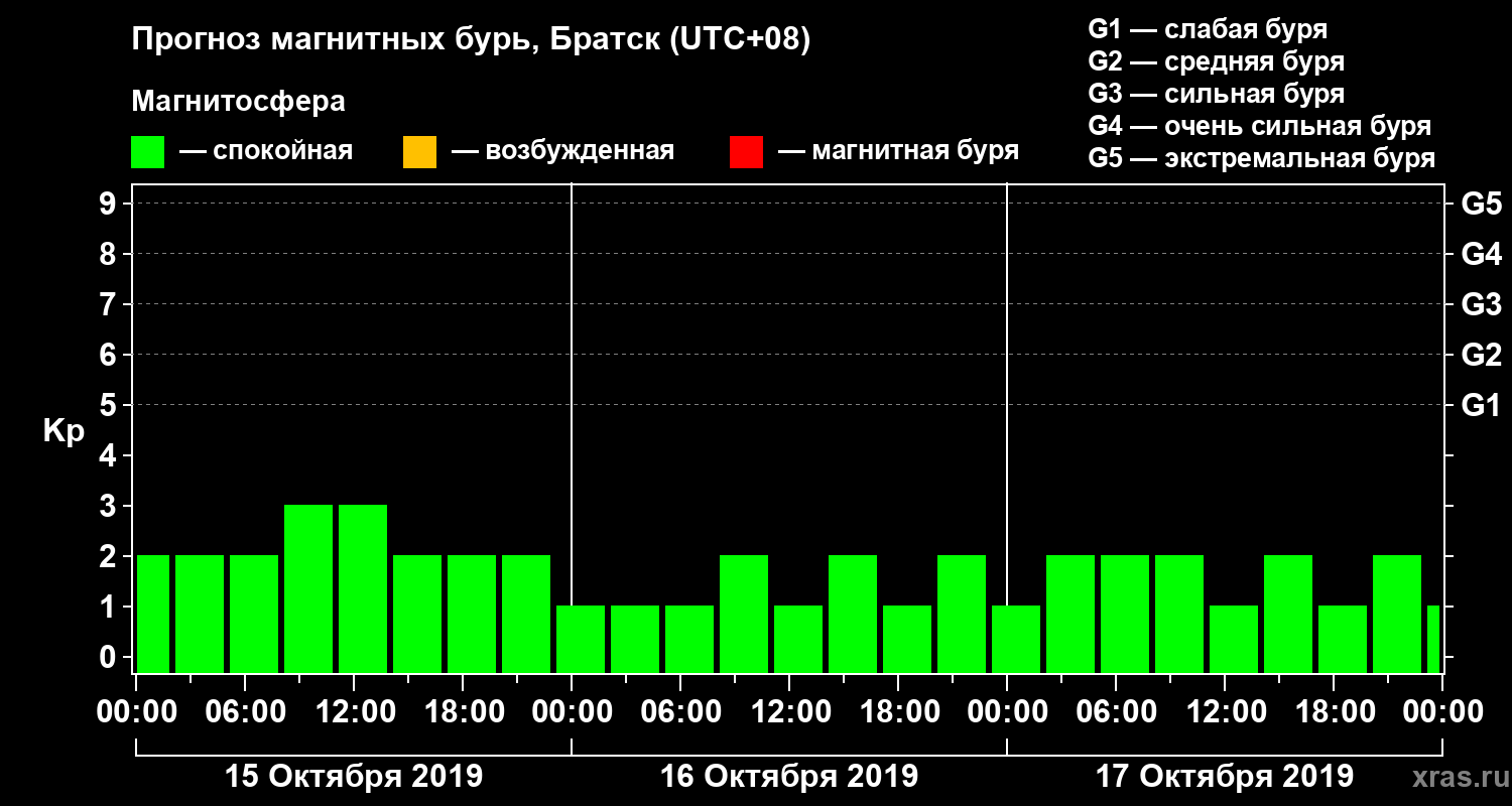 Прогноз магнитных бурь в Братске на 15 октября 2019 года
