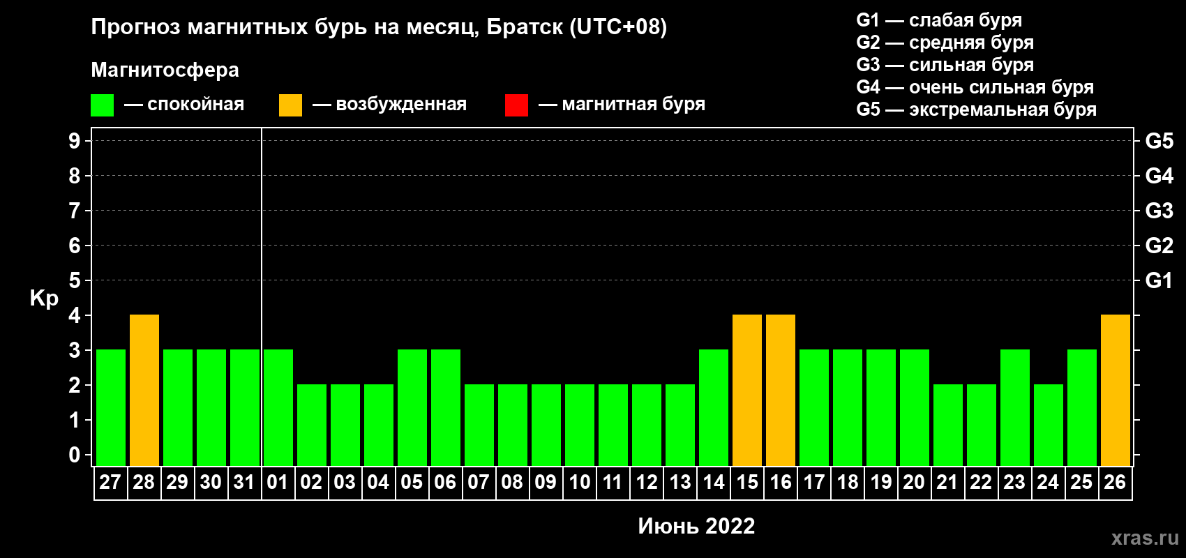 Прогноз магнитных бурь в Братске — 27 мая 2022 года