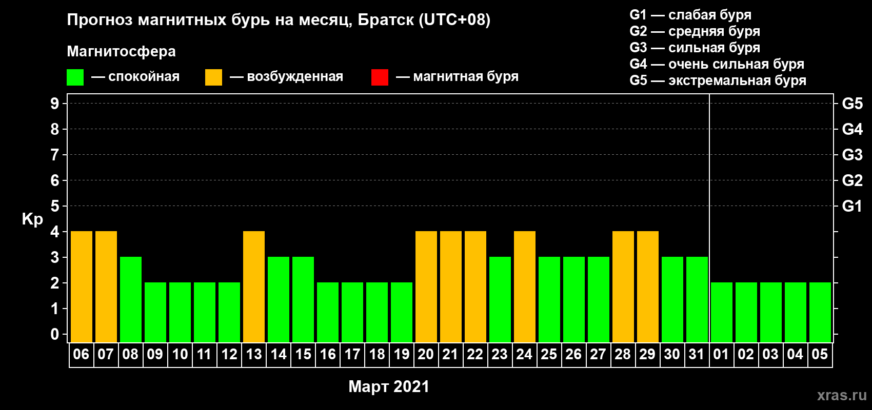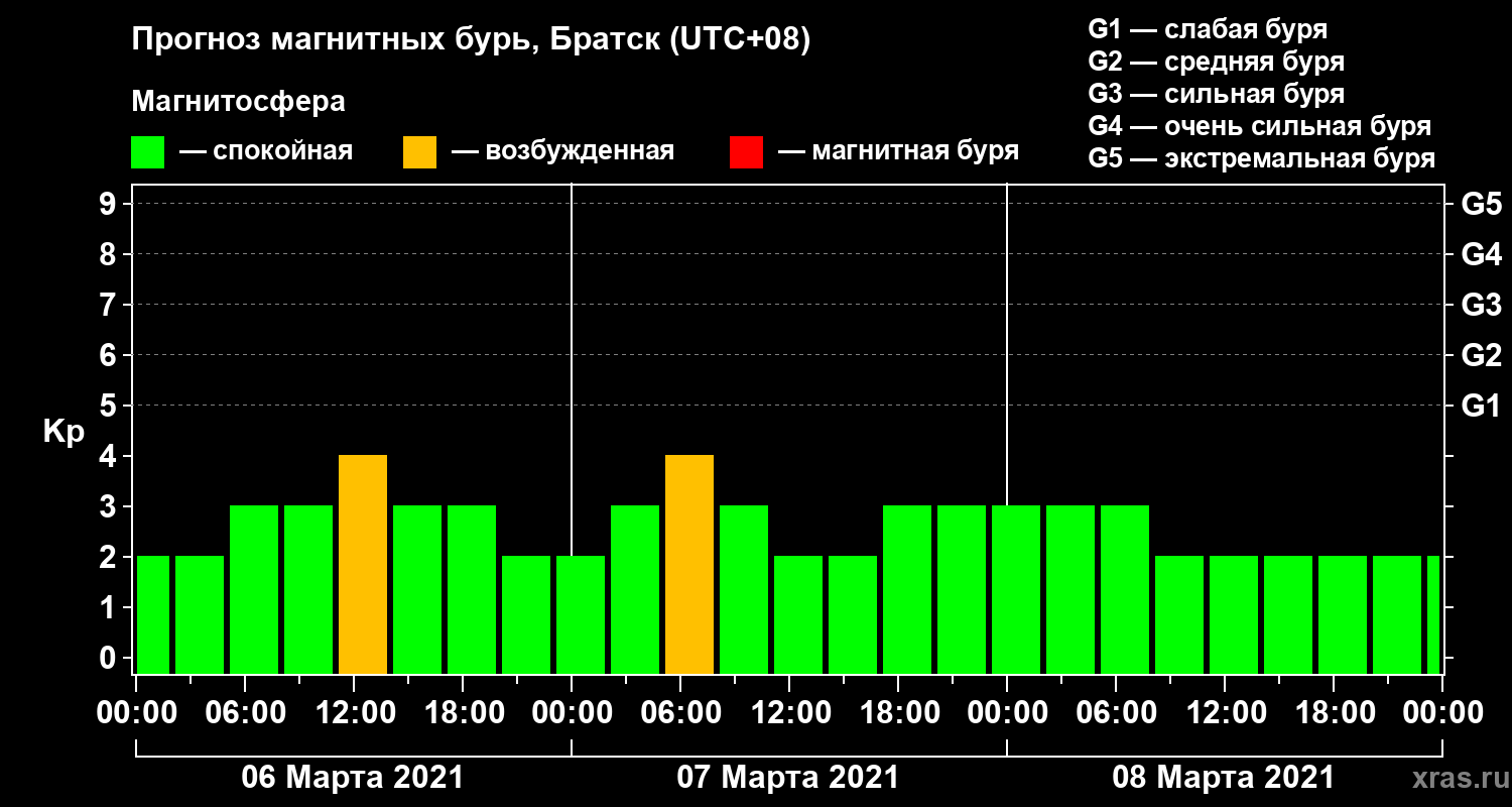 Прогноз магнитных бурь в Братске — 6 марта 2021 года
