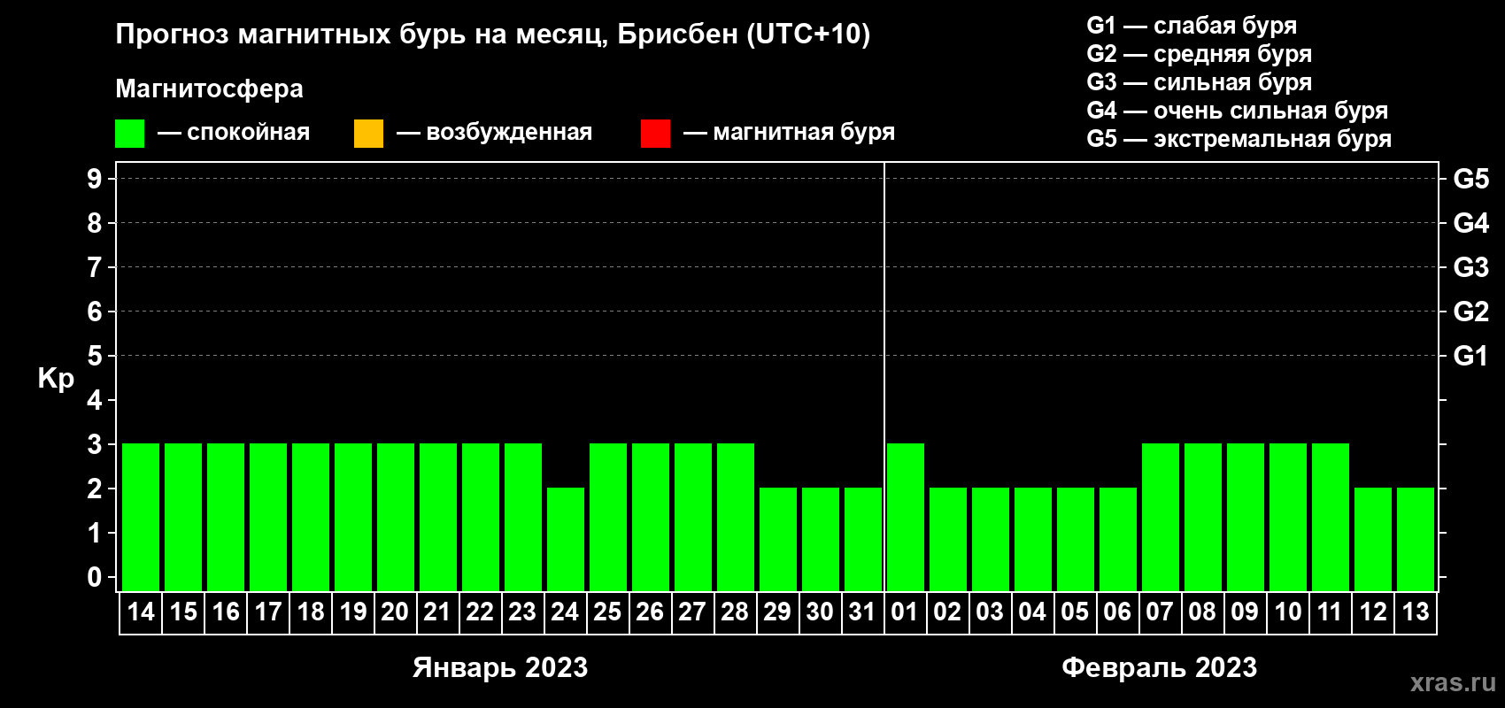 Прогноз магнитных бурь в Брисбене — 14 января 2023 года