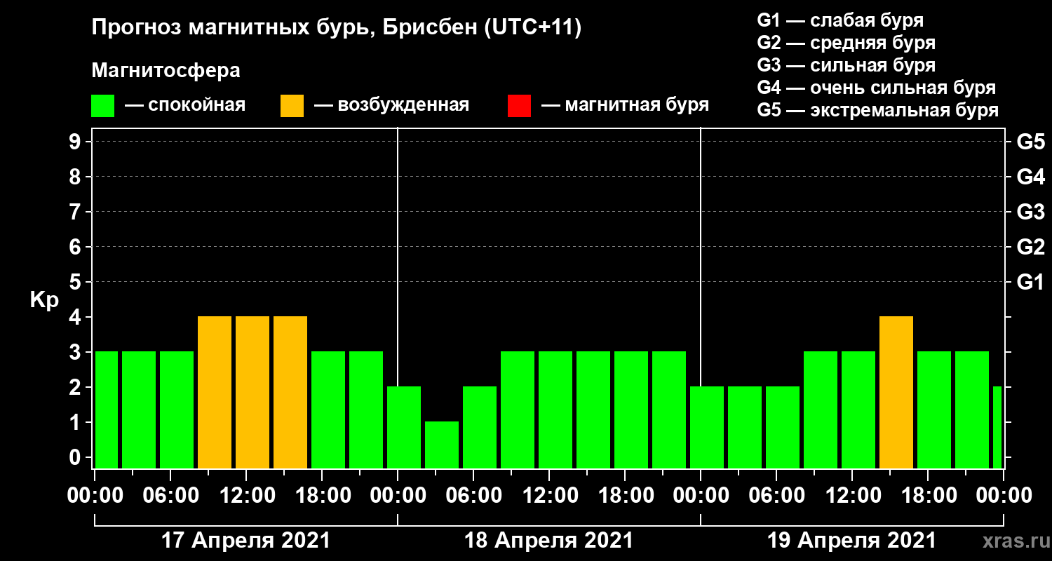 Прогноз магнитных бурь в Брисбене — 17 апреля 2021 года