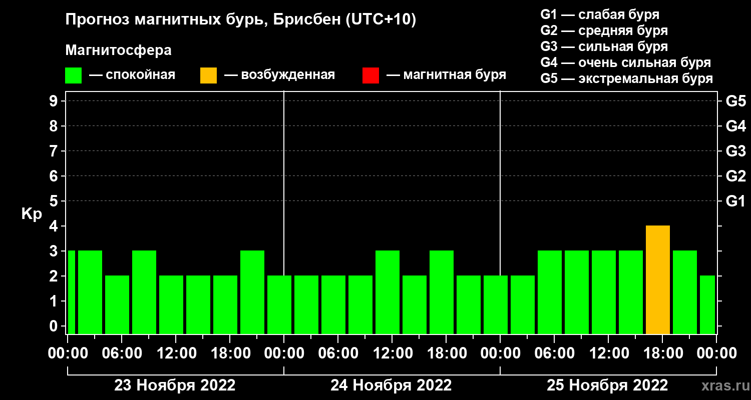 Прогноз магнитных бурь в Брисбене — 23 ноября 2022 года