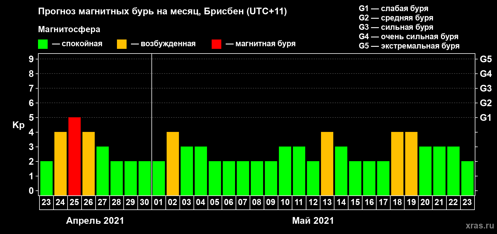 Прогноз магнитных бурь в Брисбене — 23 апреля 2021 года