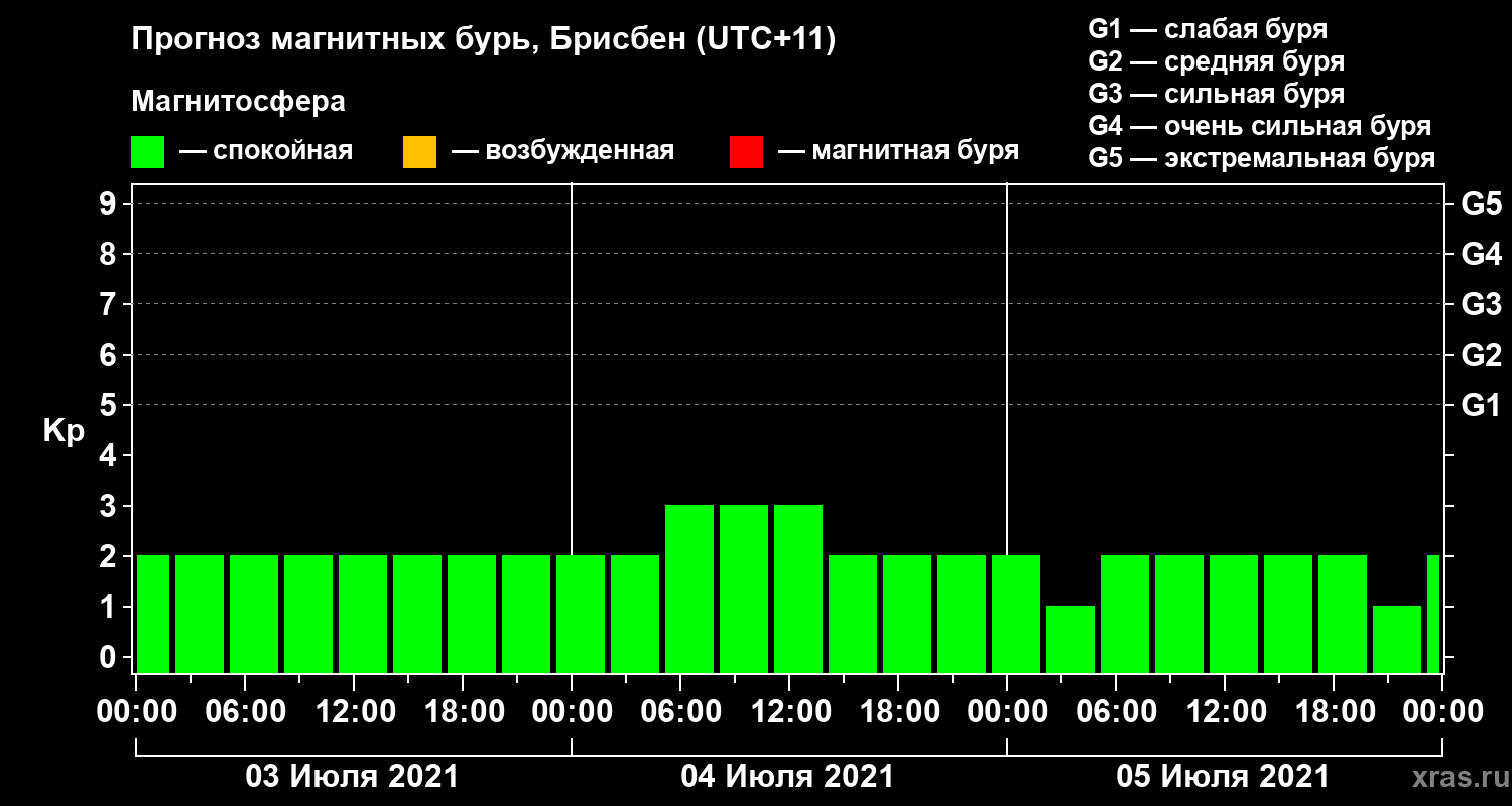 Прогноз магнитных бурь в Брисбене — 3 июля 2021 года