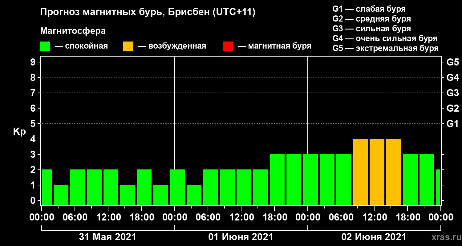 Прогноз магнитных бурь в Брисбене — 31 мая 2021 года