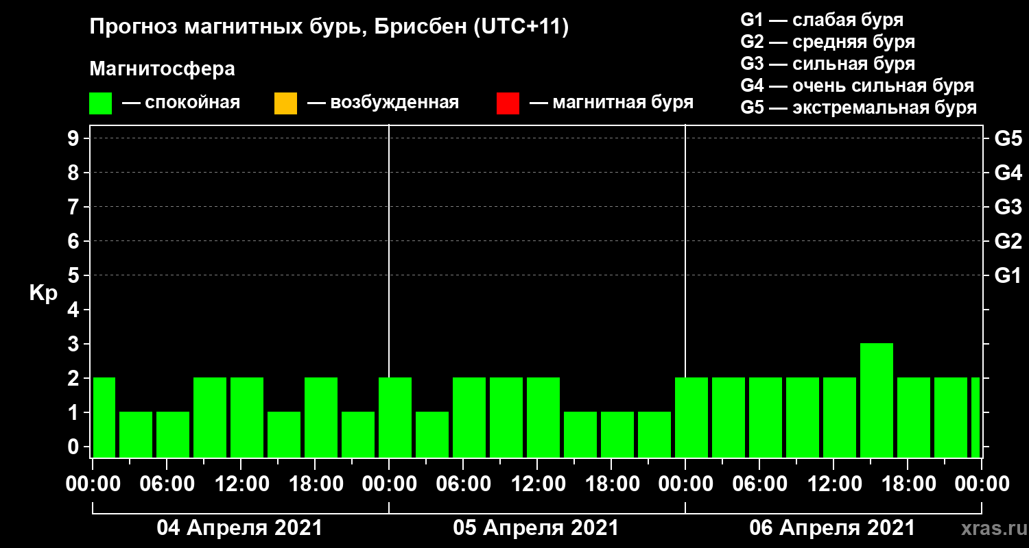 Прогноз магнитных бурь в Брисбене — 4 апреля 2021 года