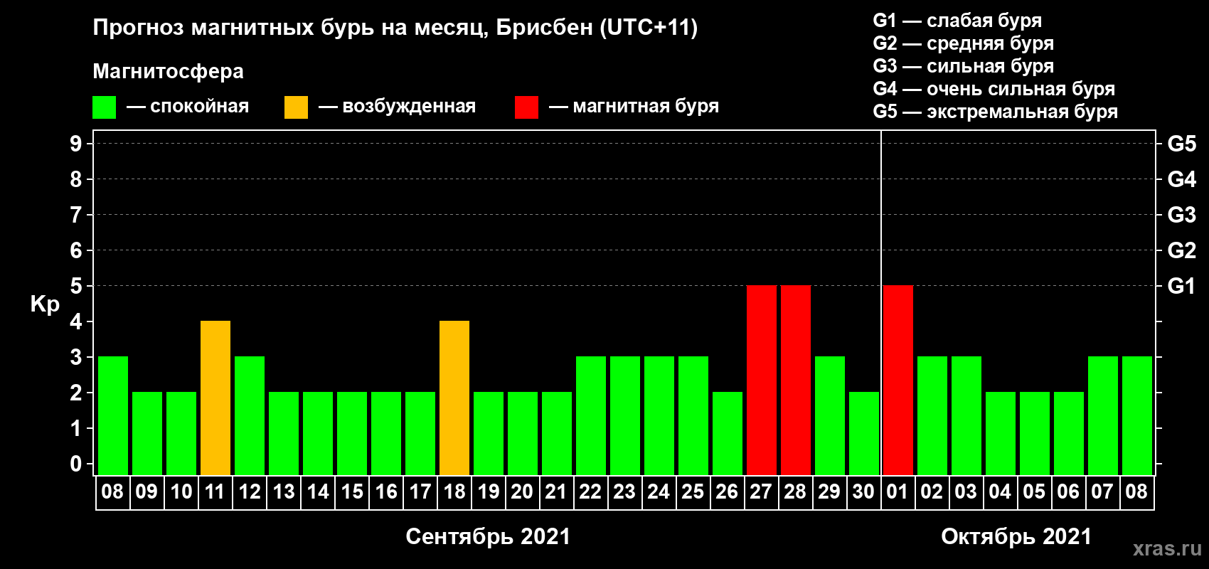Прогноз магнитных бурь в Брисбене — 8 сентября 2021 года