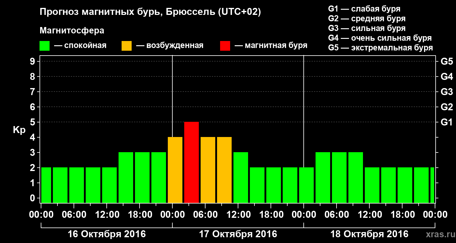 Прогноз магнитных бурь в Брюсселе — 16 октября 2016 года