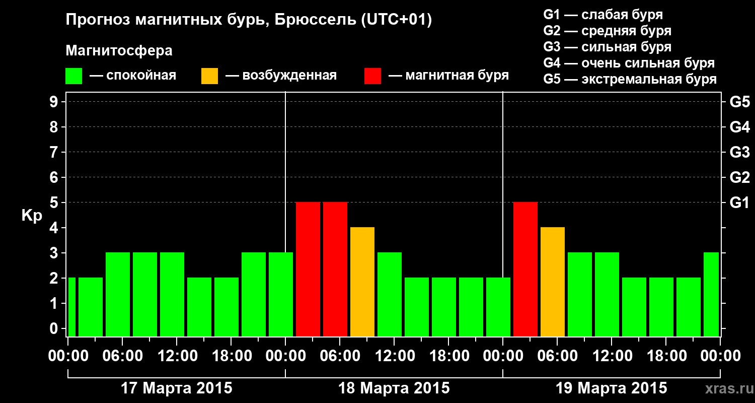 Прогноз магнитных бурь в Брюсселе — 17 марта 2015 года