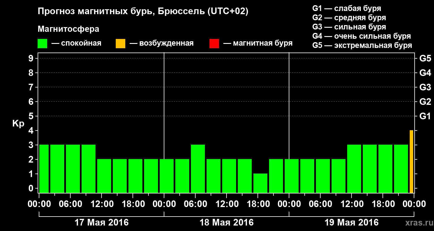Прогноз магнитных бурь в Брюсселе — 17 мая 2016 года