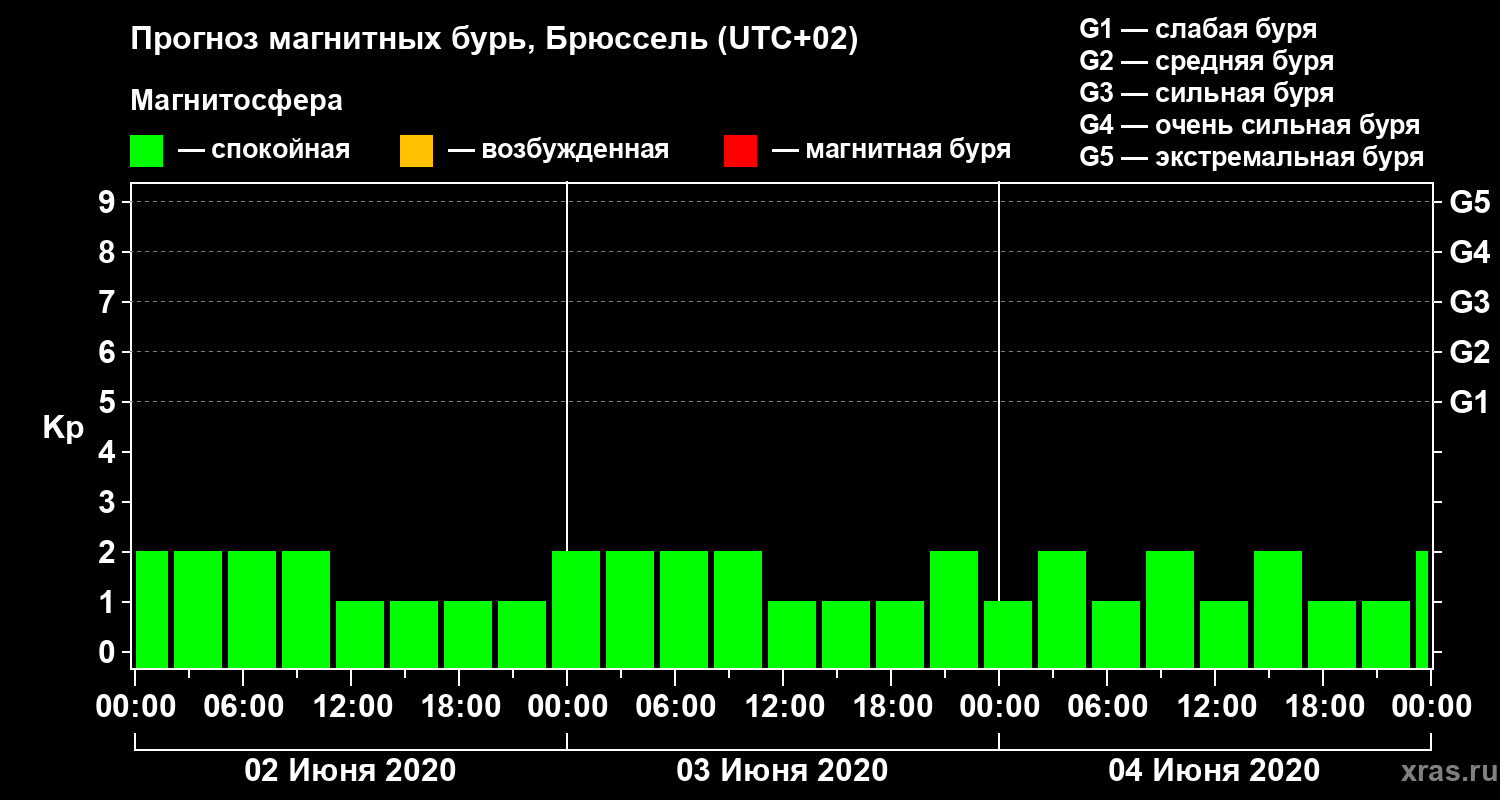 Прогноз магнитных бурь в Брюсселе — 2 июня 2020 года
